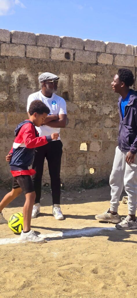 For the Sports Academy, we delivered footballs, pumps, training cones, goalkeeper gloves, and donated football shoes. The players immediately began training with them.